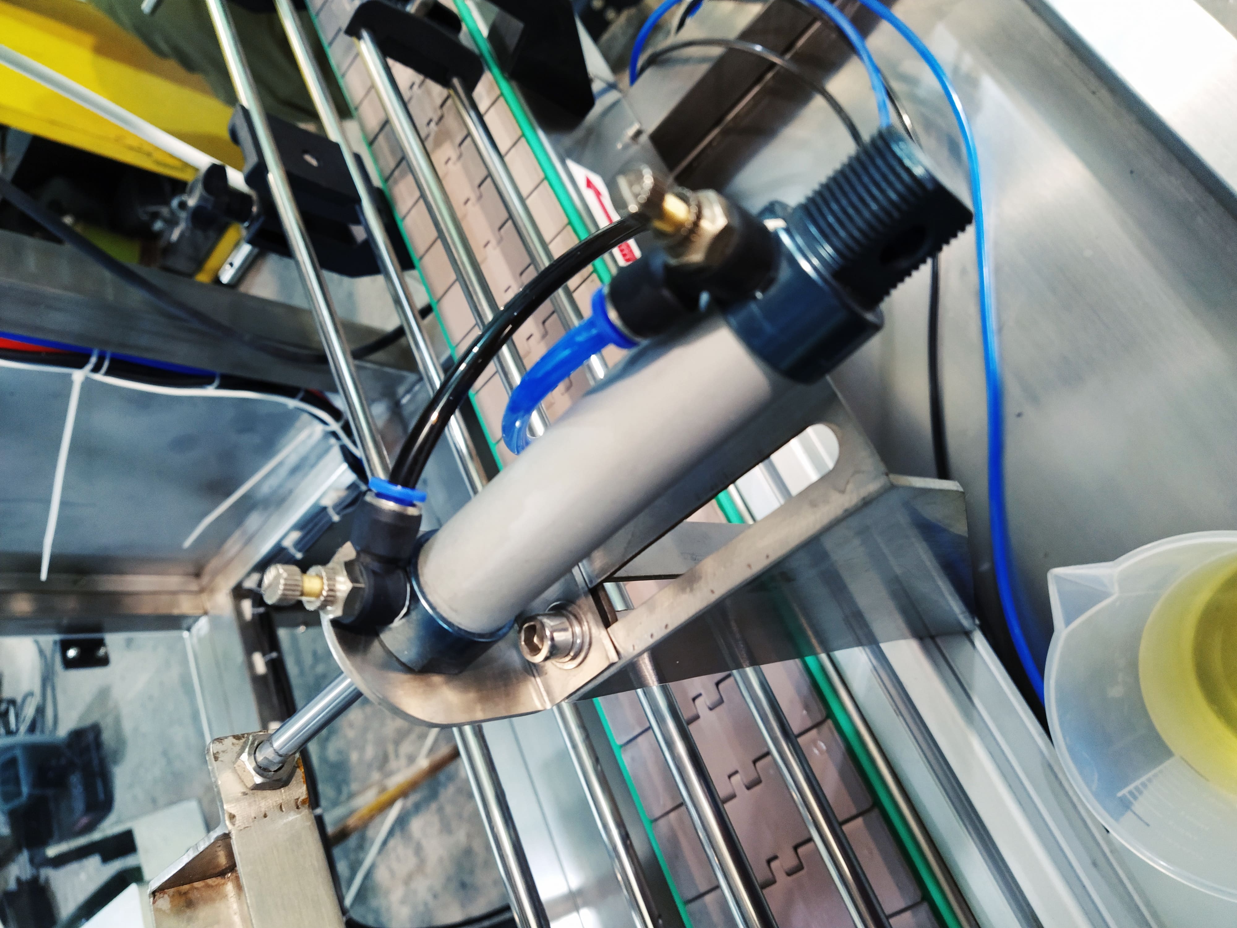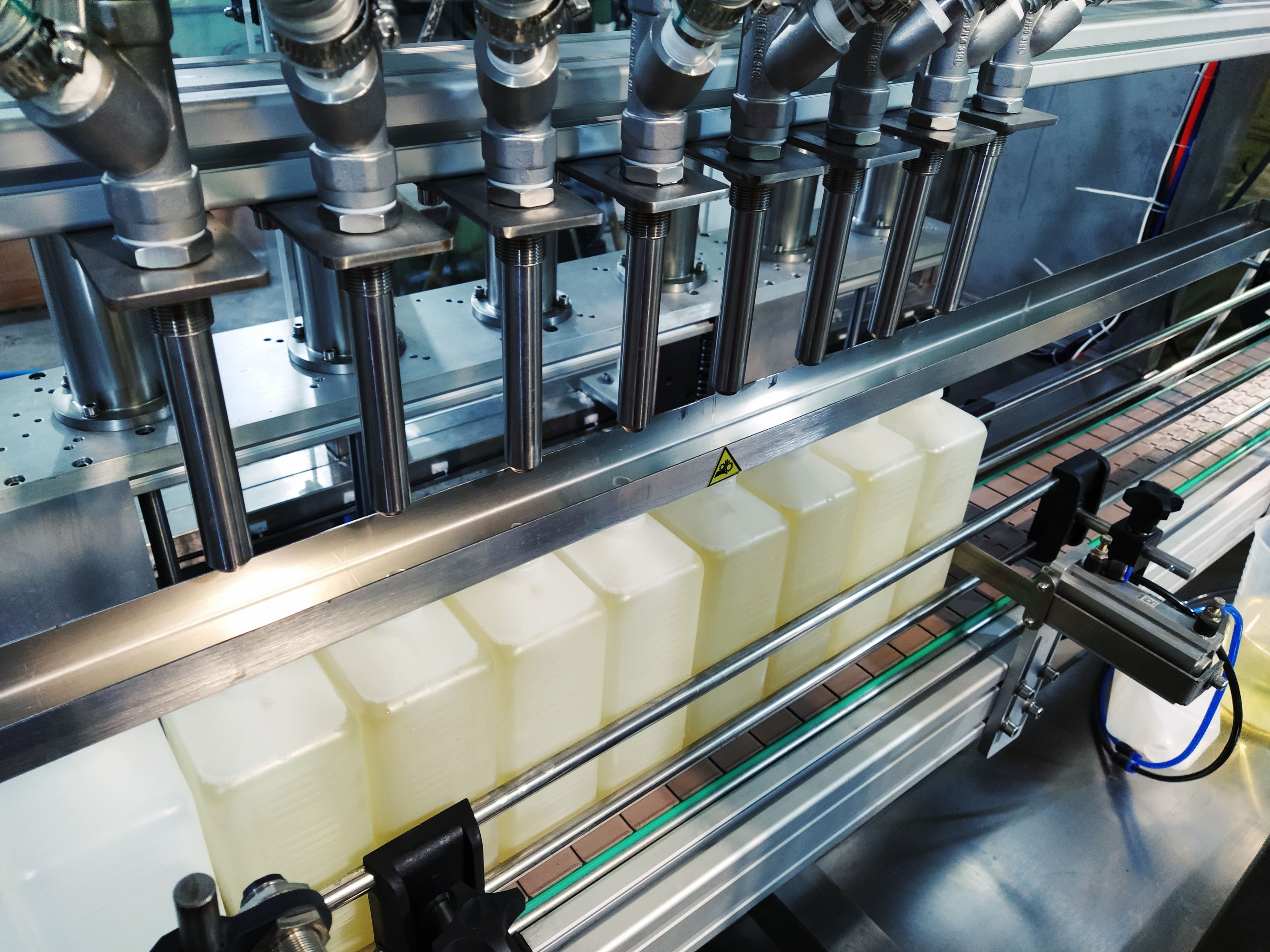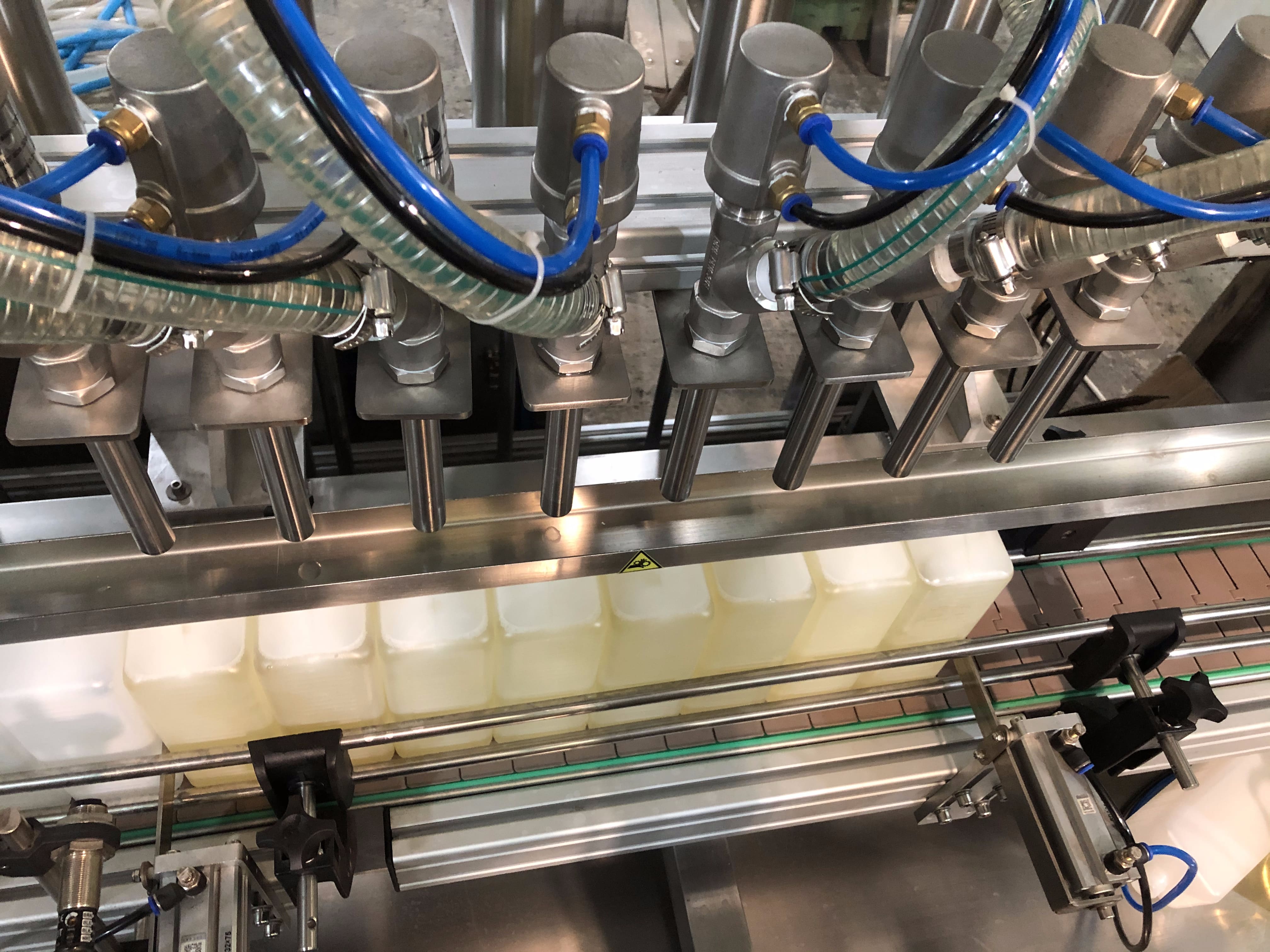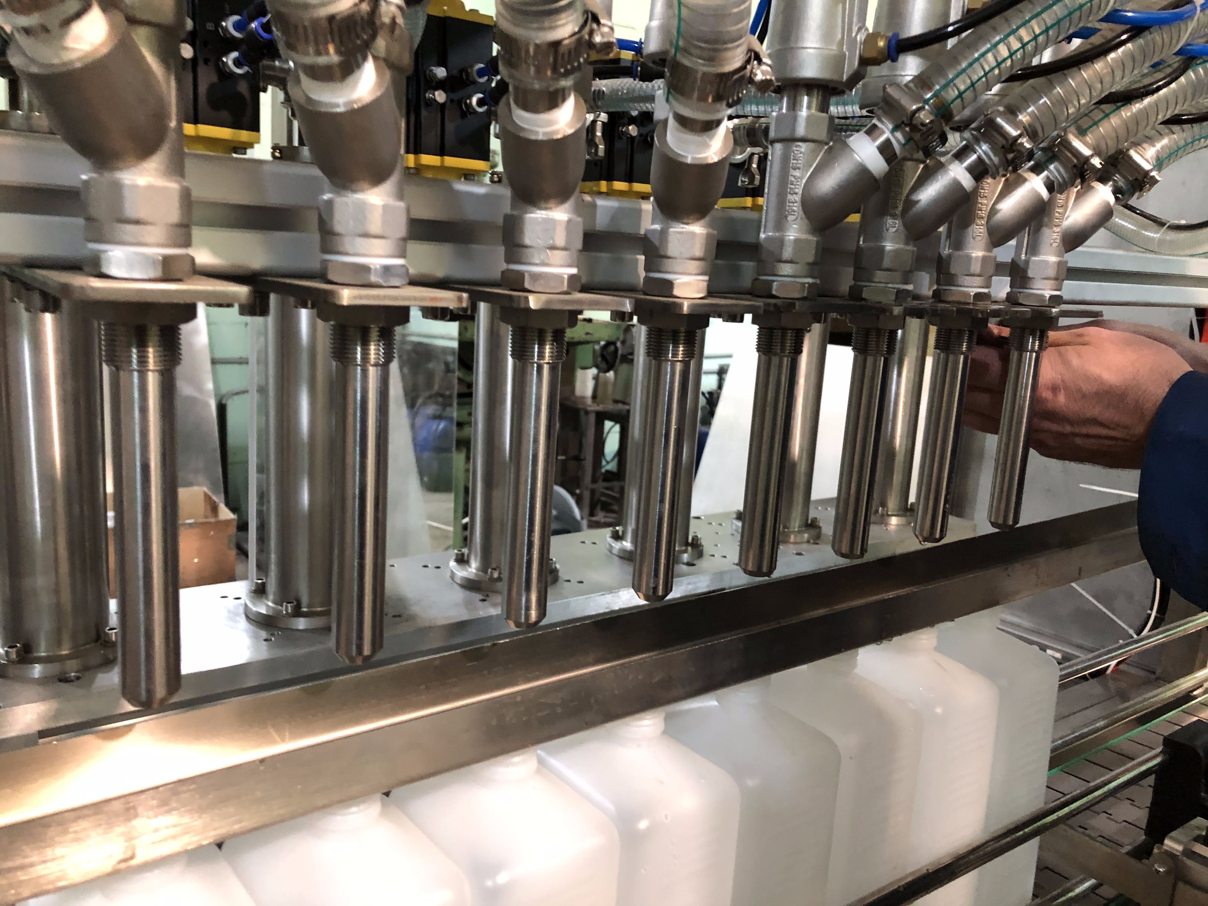 Отсутствие пены при работе. Если продукт имеет свойство пенится при наливе, то линия розлива оснащается соплами с подъемными механизмами (функция донного налива) которые поднимаются по мере наполнения продуктом тары.