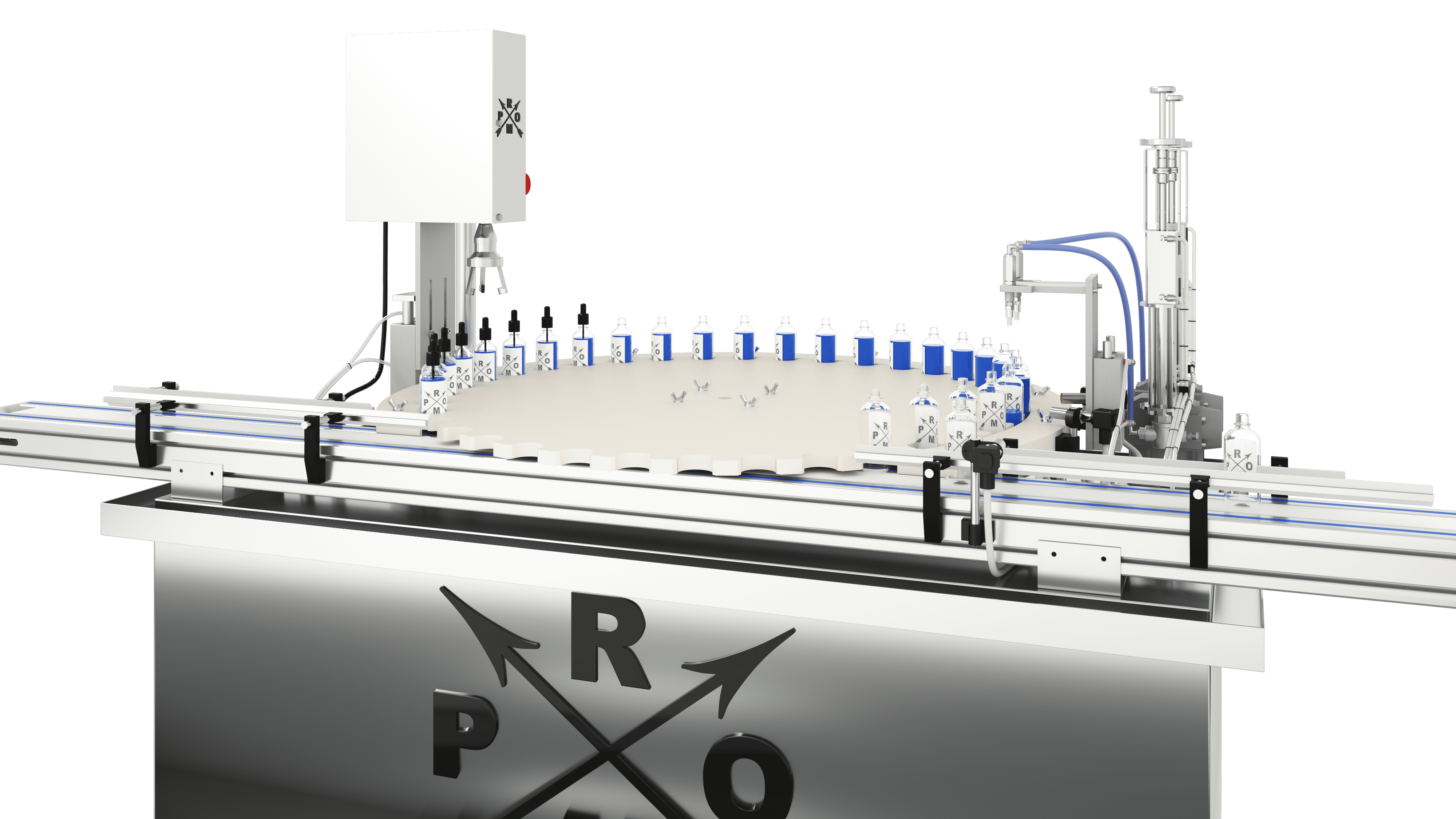 Моноблок розлива Protos с объемными поршневыми дозаторами подходит для розлива косметических и фармацевтических субстанций. Станция розлива может дозировать как очень текучие продукты, так и сильно густые и пенящиеся продукты. Два сопла обеспечивают производительность до 1500 штук продукции в час. Поршневой дозатор имеет определенный диапазон работы по объему: