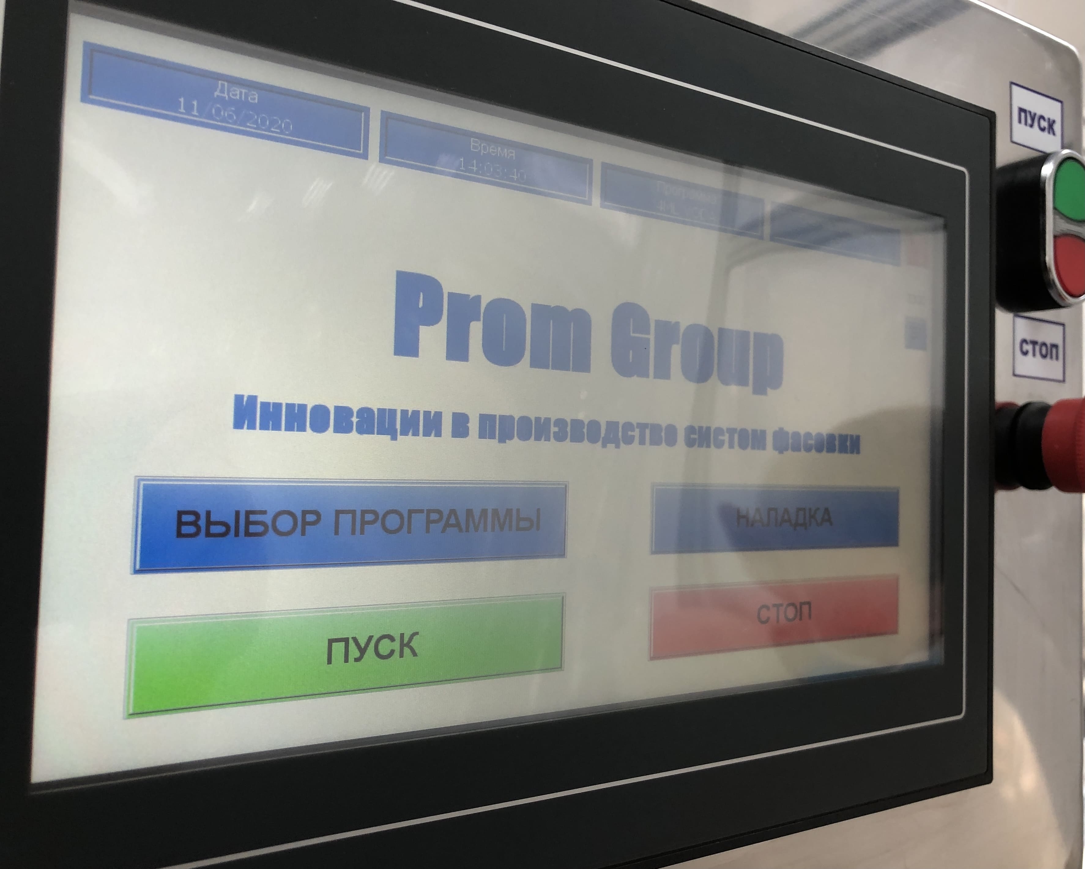 Управление моноблока осуществляется с помощью PLC «программируемого логического контроллера». Все системы, параметры и работа датчиков вынесена в панель оператора. С панели возможно производить настройку, наладку и переналадку оборудования, посмотреть работоспособность отдельных датчиков и электрических цепей. В памяти программы хранится все действия и ошибки, которые возникли при работе оборудования. Также для удобства можно сохранять в памяти машины до 10 рецептов продуктов.