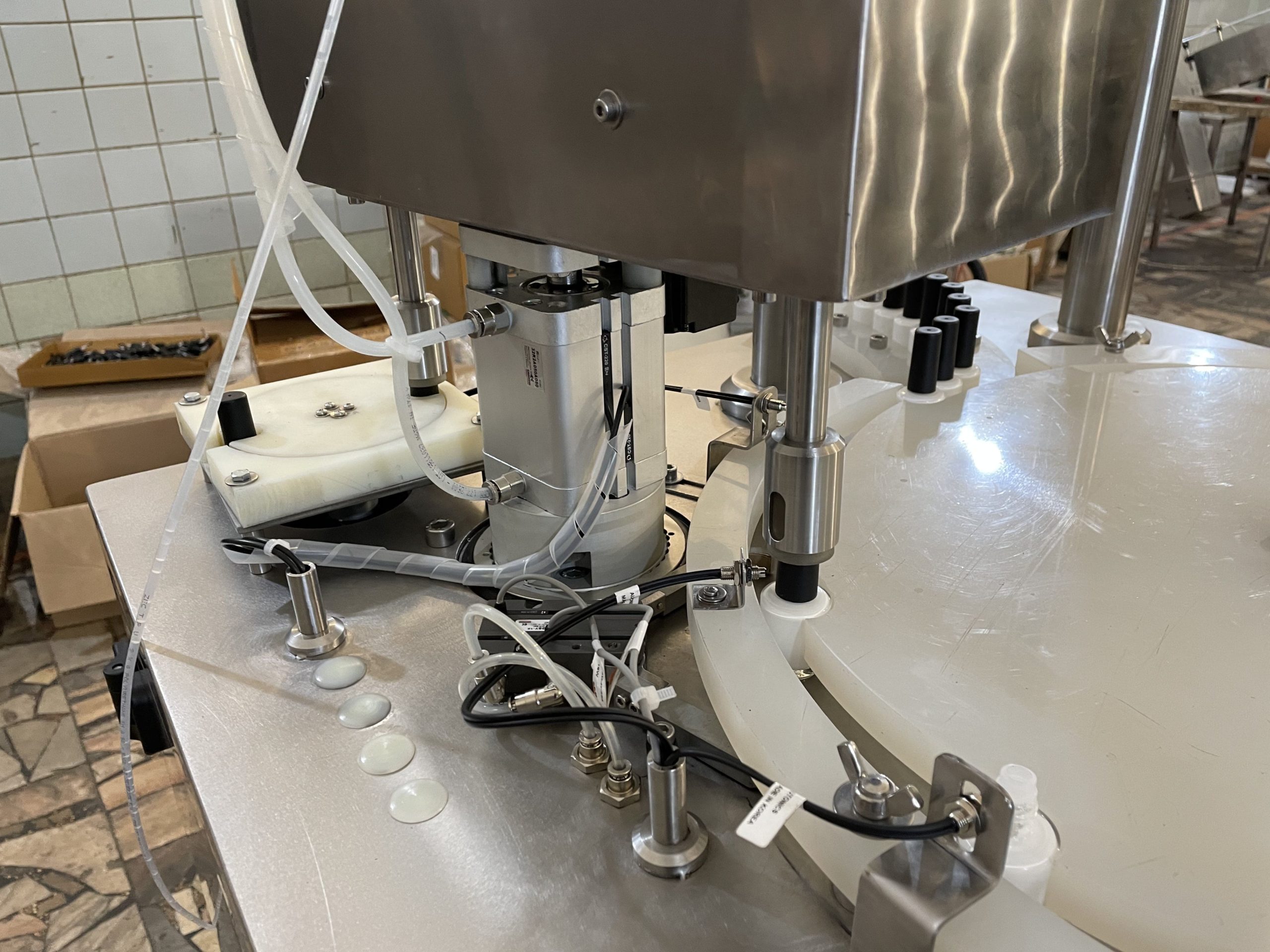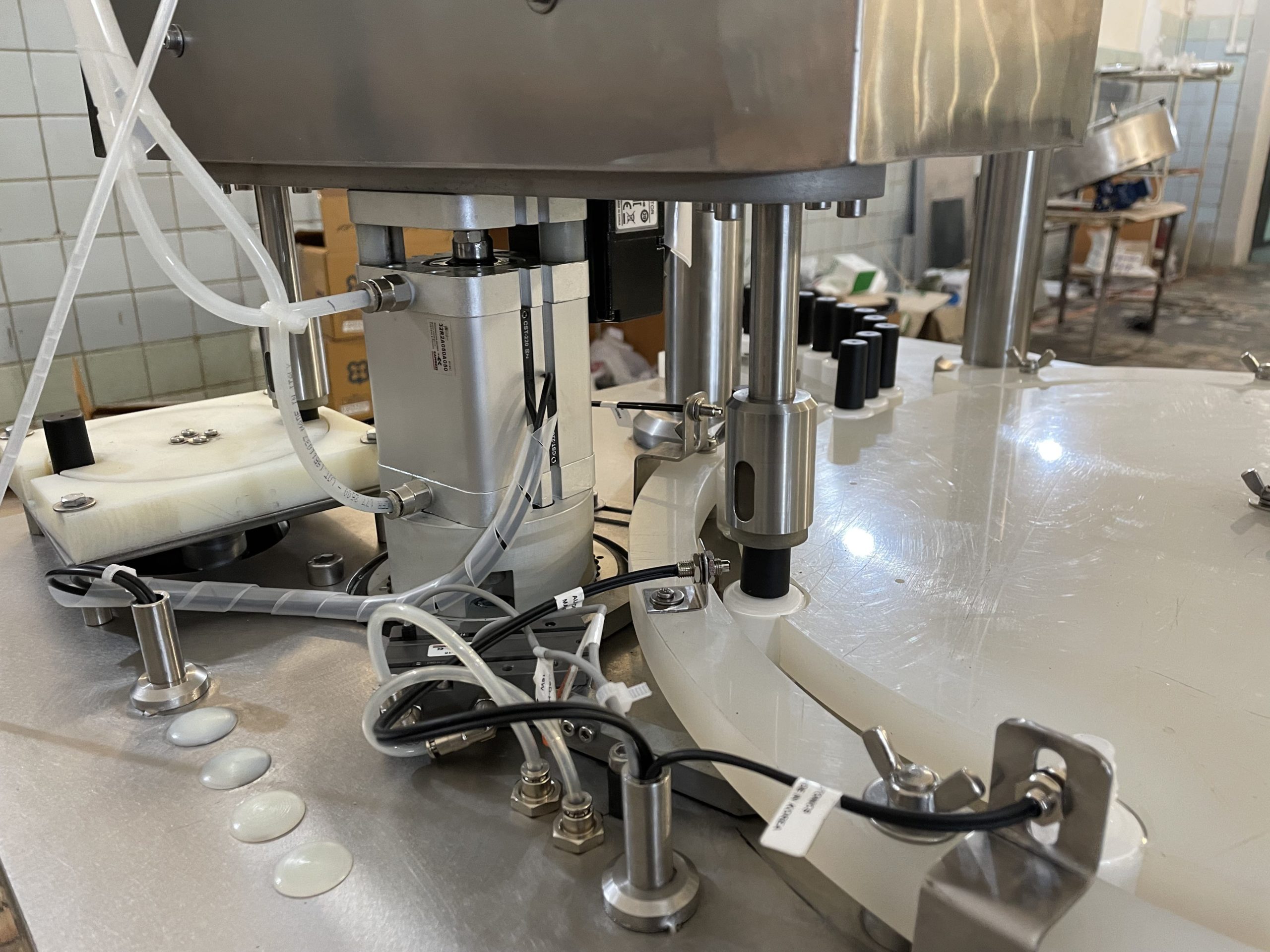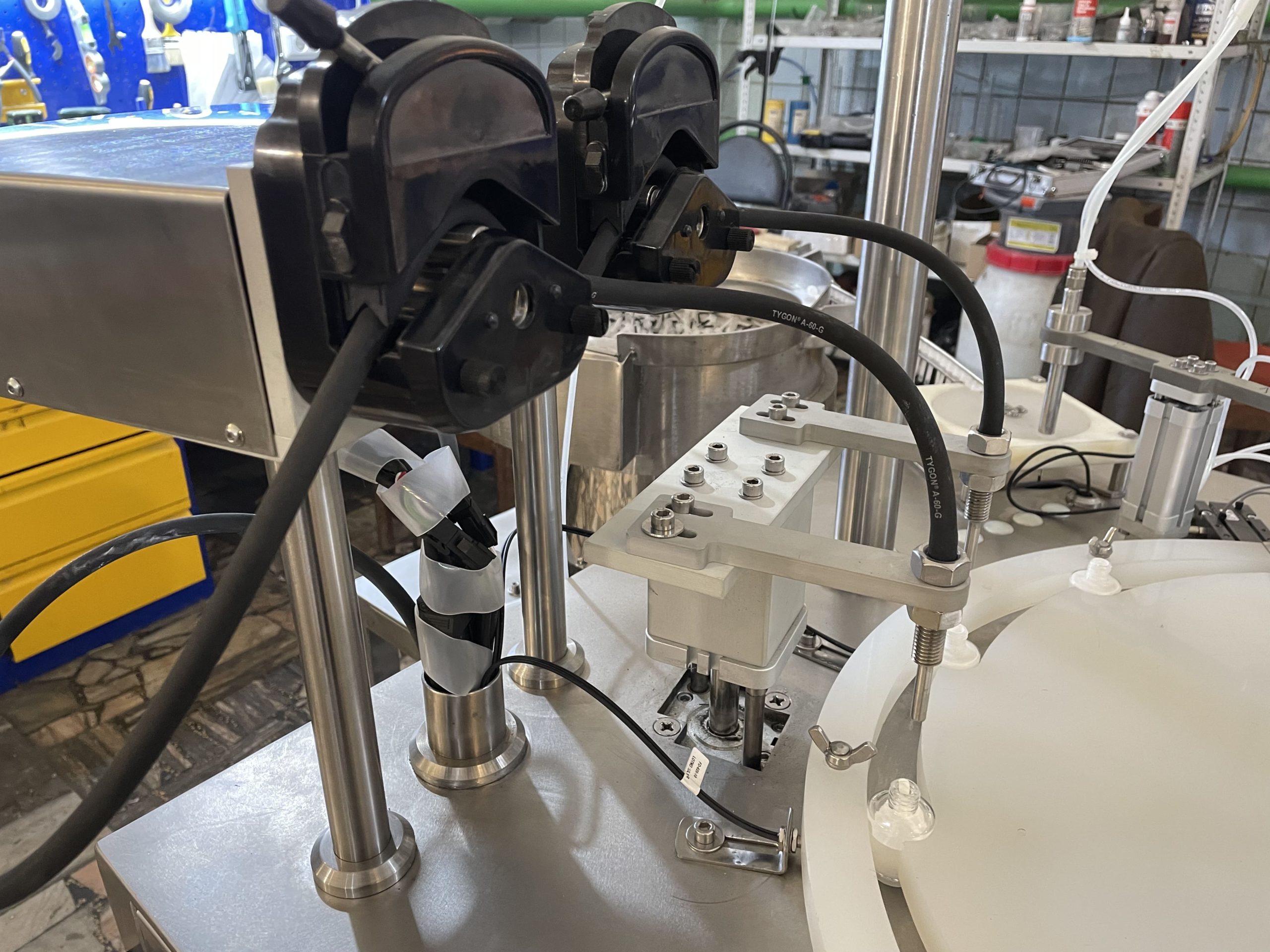 В связи с увеличением объемов выпускаемой продукции, нашим контрагентом было принято решение об автоматизации процесса выпуска готовой продукции. Стояли задачи в автоматизации Розлива, Ориентации крышки, Сборка 2-ух компонентной крышки и Укупорки продукции.